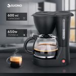 Su jarra de vidrio resistente de 600 ml permite preparar hasta 5 tazas de café, ideal para compartir o disfrutar durante el día. Incluye un filtro removible y lavable, lo que te permite ahorrar en filtros de papel y mantener una preparación más ecológica y práctica.