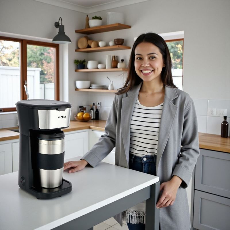 La Cafetera de Filtro KLASSE con jarro portable está pensada para quienes disfrutan del buen café en todo momento. Su diseño práctico y moderno permite preparar tu café de forma simple y llevarlo con vos a donde vayas.