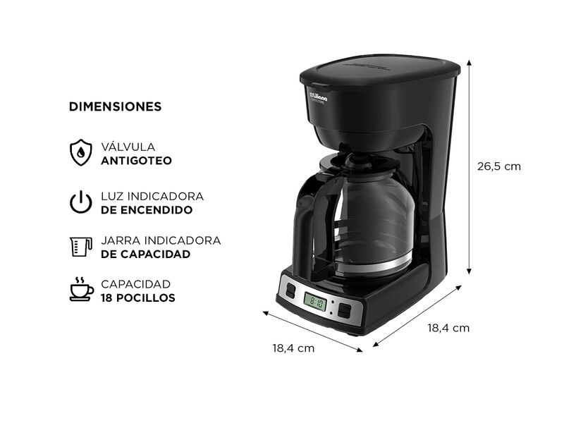 Capacidad: 1.8 lts, 18 tazas.