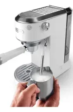 Domina el arte del espresso, el cappuccino y otras bebidas a base de leche y café en casa con Dedica Duo. Disfruta de un café caliente y frío, incluida la exclusiva receta Cold Brew, y dale a tus bebidas ese toque de barista con la varilla My LatteArt. Esta cafetera compacta se adapta a cualquier espacio, añadiendo a tu cocina un estilo italiano de forma sencilla.