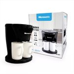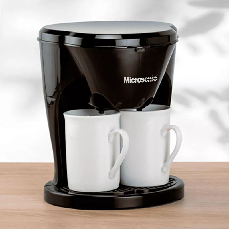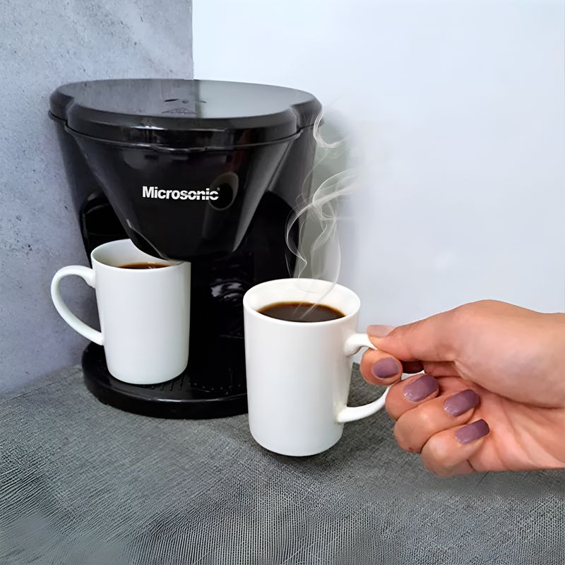 Arrancá tus mañanas con el aroma del café recién hecho gracias a la Cafetera Eléctrica Microsonic. Su doble sistema de goteo te permite preparar dos tazas de café a la vez, y para mayor comodidad, ¡ya vienen incluidas! Cada taza tiene capacidad de 170 ml, mientras que el depósito de agua es de 280 ml, ideal para que cada taza tenga la medida justa.