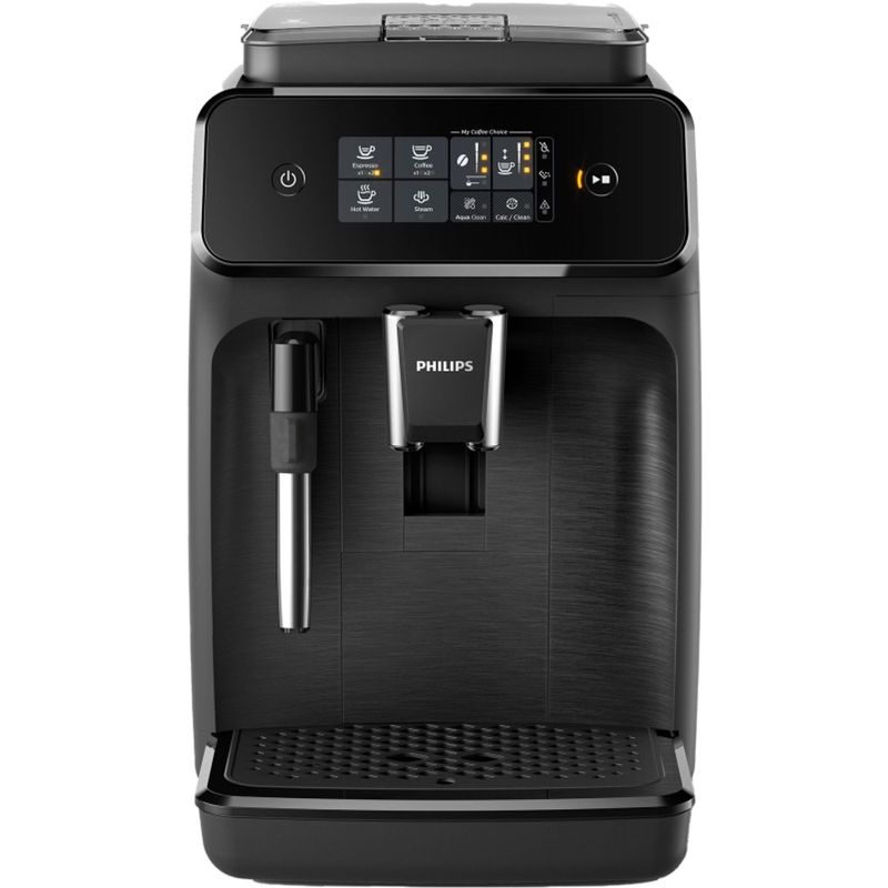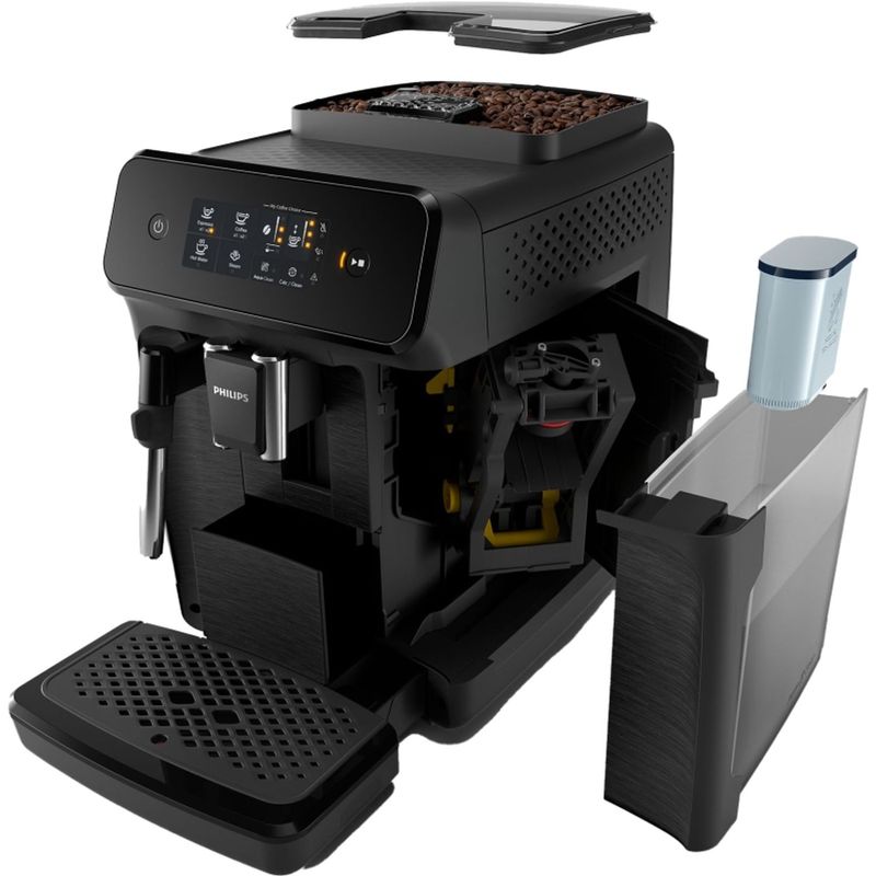 CAFETERA EP1220/02 EXPRESSO AUTOM¦TICA PHILIPS -Longitud del cable 100 cm -Voltaje 220 V -Frecuencia 50 Hz -Capacidad del depósito de residuos 12 serv -Capacidad del tanque de agua 1,8 -Capacidad de granos de café 275 g -Contenedor de residuos Acceso frontal -Tanque de agua Acceso frontal -Compatibilidad del filtro AquaClean -Presión de la bomba 15 bar -Ajuste ECO: Sí -Etiqueta energética: Clase A -Consumo de energía de la preparación: 1500 W -Material de empaque reciclable: >95 % -Ajustes del molinillo: 12 -Control de aroma previo a la preparación: Sí -Ajustes de temperatura: 3 -Altura de boquilla ajustable: 85 - 145mm -Solución para la leche: Espumador de leche clásico -Facilidad de limpieza y mantenimiento:Compatible con el filtro AquaClean -Piezas aptas para lavavajillas: Espumador de leche clásico - Bandeja de goteo -Interfaz de usuario: Pantalla táctil -Accesorios: Tubo para engrasar, Cuchara para medir, Tira de análisis para revisar la dureza del agua -Dimensiones del producto: 246 x 371 x 433 mm -Peso del producto 7.5 kg -Color y acabado: Negro -Modelo EP1220/02 -Garantía fabricante 24 meses -Origen Rumanía
