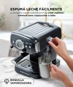 La cafetera incluye vaporizador que permite espumar o calentar leche facilmente. Esto permite preparar cappuccino o latte con espuma cremosa. El control de vapor permite ajustar el nivel segun la preparacion. Esto brinda mayor versatilidad para diferentes bebidas. El sistema permite preparar bebidas estilo cafeteria en casa.