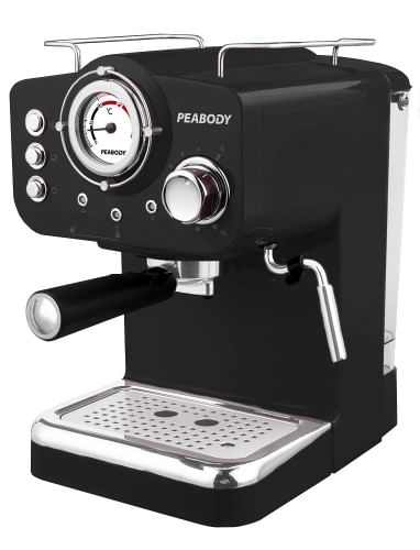 La cafetera express Peabody CE15003R tiene un diseño vintage en color rojo o color negro con detalles en acero inoxidable.