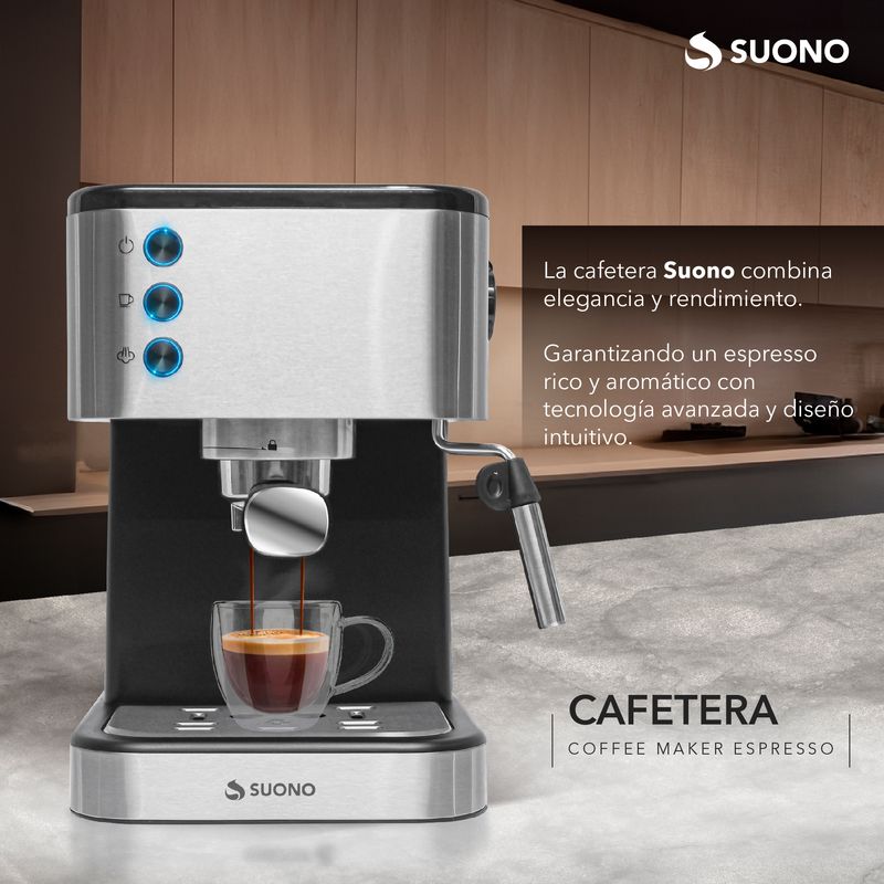 Cafetera Expresso Suono 1.5 L. Calidad y Elegancia para tu Café Perfecto