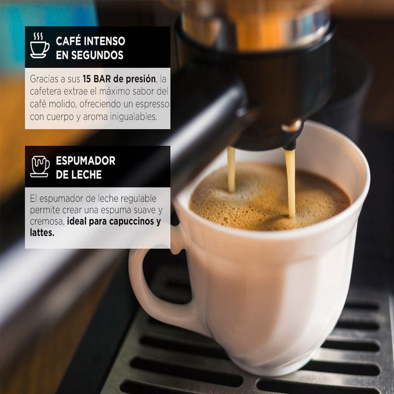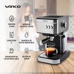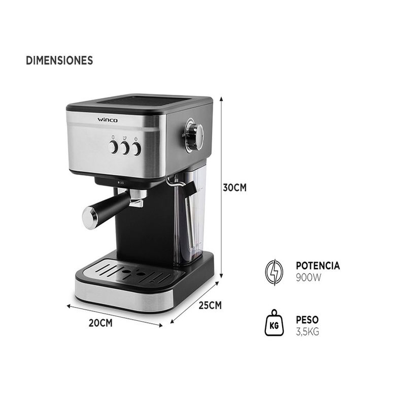 La Cafetera Express Winco W1925 es la compañera ideal para los amantes del buen café. Con su potente presión de 15 BAR y espumador de leche regulable, prepará espressos, capuccinos y lattes como un verdadero barista. Su diseño elegante con caldera de aluminio y tanque extraíble de 1 litro garantiza durabilidad y comodidad. Además, cuenta con bandeja calienta tazas y protección por sobrecalentamiento para una experiencia segura y profesional