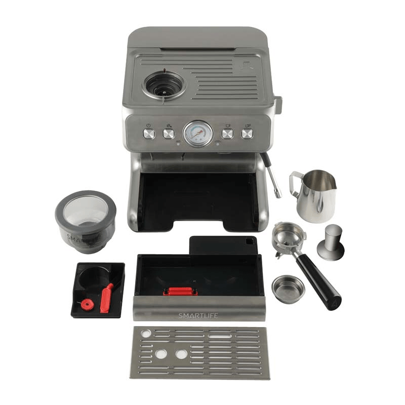 Cafetera Expresso con Molinillo Smartlife ECG5020 – Café en Grano y MolidoDisfrutá del verdadero sabor del café recién molido con la Cafetera Expresso Smartlife ECG5020. Diseñada para los amantes del café de especialidad, integra molinillo incorporado que permite preparar cada taza con granos recién molidos, conservando al máximo el aroma y la intensidad.