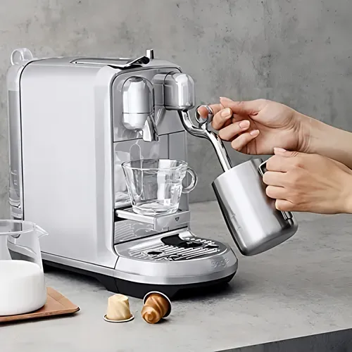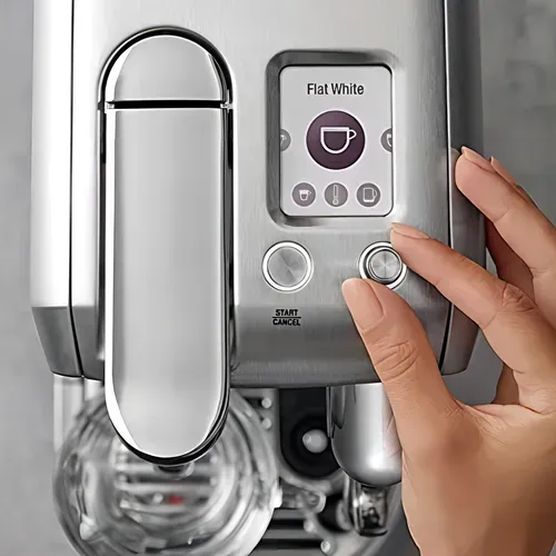 La pantalla digital y el dial te permiten explorar todas las opciones disponibles y seleccionar la receta de café exacta, antes de crear tu propio Latte Art. Además, disfruta del elegante acabado de acero inoxidable cepillado, que se combina a la perfección con la jarra de leche de barista.