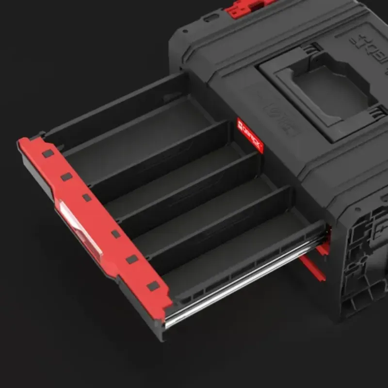 La Qbrick System PRO Drawer 3 es la solución de almacenamiento más ágil para el profesional moderno. Este módulo revoluciona la organización en el taller al permitir el acceso total a herramientas y consumibles mediante cajones frontales, eliminando la necesidad de desapilar cajas superiores para alcanzar lo que necesitás. Su diseño robusto, combinado con una estética profesional, la convierte en una pieza central para cualquier configuración de taller móvil o fijo que busque maximizar la productividad y el orden quirúrgico.