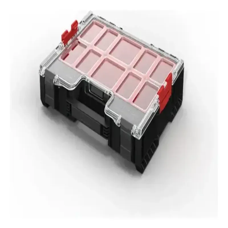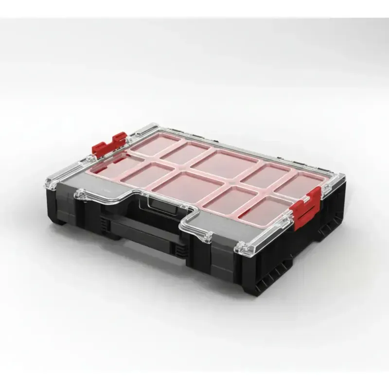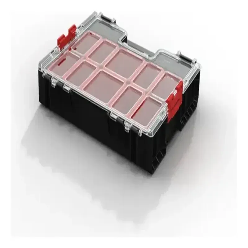 El Qbrick System PRO Organizer 300 se posiciona como el modelo de mayor volumen y profundidad dentro de la línea PRO. Es la solución definitiva para el profesional que necesita almacenar no solo tornillería, sino también accesorios de mayor porte, conectores industriales y piezas voluminosas que no caben en organizadores estándar. Su diseño robusto y capacidad de integración modular permiten centralizar una gran cantidad de insumos en un solo bloque sólido, seguro y fácil de transportar.
