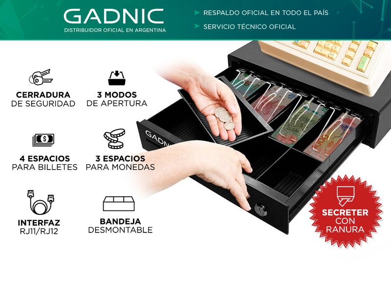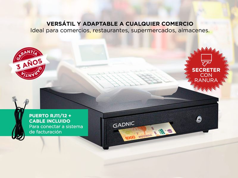 Las cajas registradoras para dinero son uno de los componentes principales de cada punto de venta. Asegurarse de tener la gaveta portavalores más segura y duradera del mercado. La caja para dinero GADNIC G335 es la solución perfecta para su comercio. Está diseñada para ser confiable y duradera. También es la opción más rentable para mantener la calidad y la fiabilidad. El modelo G335 tiene un precio competitivo e incluye aún más características que muchas otras, Como cerraduras multifunción, posibilidad de conectarla a su sistema de facturación o control, recinto secreto con ranura para almacenar dinero, apoyos de goma de gran estabilidad, cerradura inviolable y muchas otras mas.