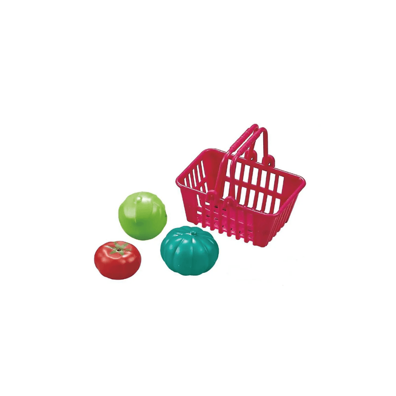 - Incluye canasta, frutas, billetes, monedas y tarjeta