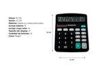 Funciones: Sumar, restas, multiplicar, dividir, borrar un dígito, gran total, CE, %, M+/M-/MRC, y botón de encendido/AC.