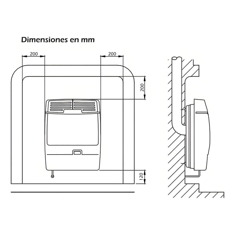 Los calefactores de tiro Natural evacuan los productos de combustión mediante un conducto al exterior y utilizan el oxígeno del ambiente para su combustión. No son adecuados para instalarse en baños ni en dormitorios. La instalación es a los cuatro vientos.