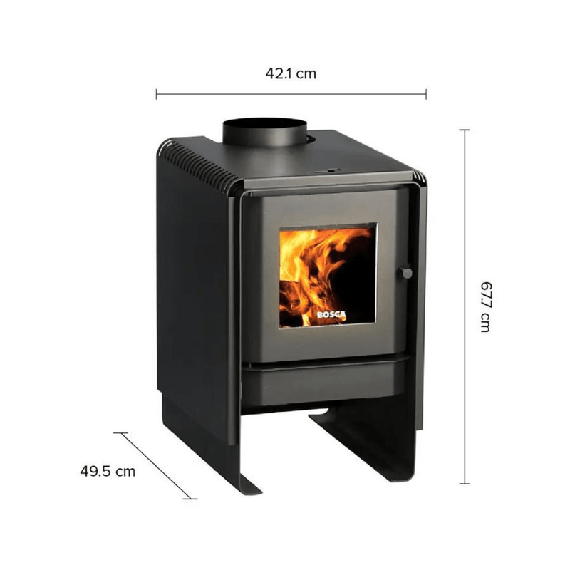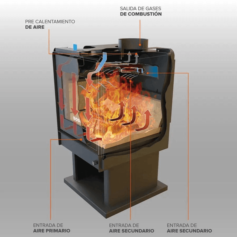 Todos los calefactores Bosca están diseñados con los más altos estándares de producción alcanzando una eficiencia energética que permite que la combustión sea correcta y limpia, con un gran aprovechamiento del combustible y bajas emisiones de material particulado por la salida de gases.