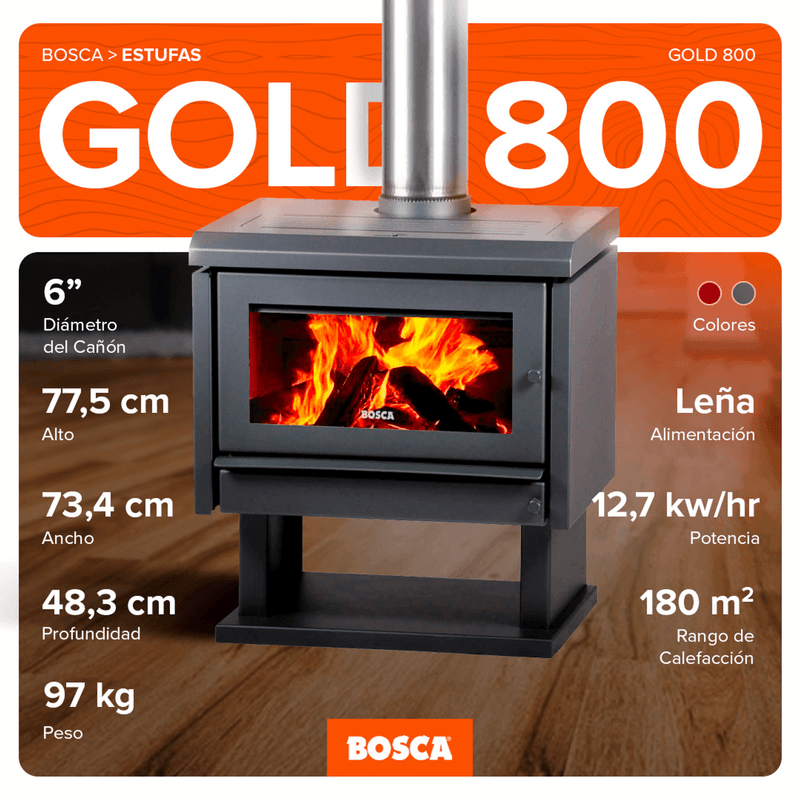 Calefactor a Leña Bosca Gold 800 Burdeo