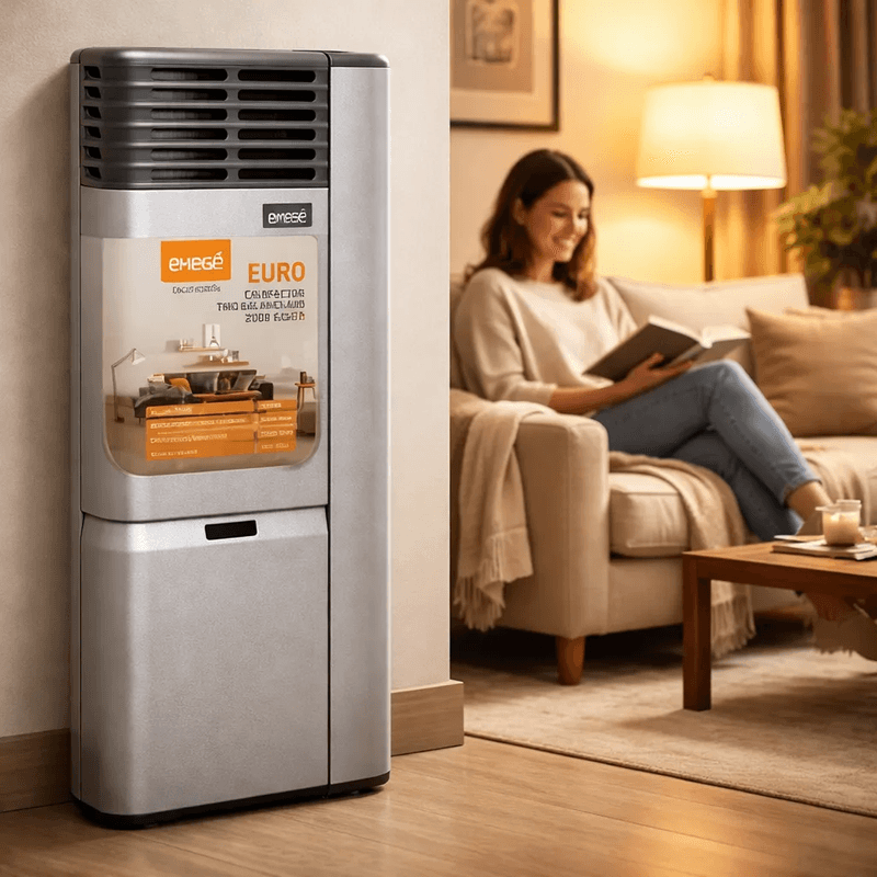 > Seguridad: El calefactor Emege viene acompañado de una válvula de seguridad que corta el gas del artefacto si, por alguna razón, se apagan las llamas del quemador para impedir que se contamine el ambiente.