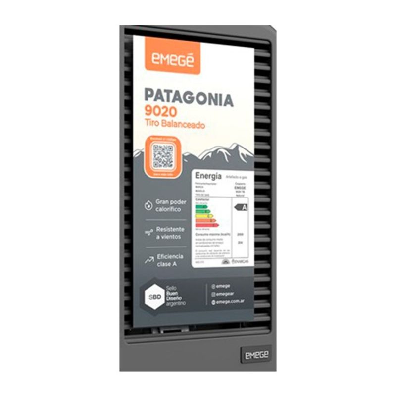 El calefactor a gas de tiro balanceado Emege Patagonia 9020 TB posee un diseño moderno que incorpora encendido piezoeléctrico; comandos superiores y sencillez en su regulación y mantenimiento. Gracias a su sistema, no consume oxigeno del ambiente. Su cámara de combustión sellada envía al exterior los gases que se van produciendo, creando un espacio más sano y seguro. No cuenta con termostato.