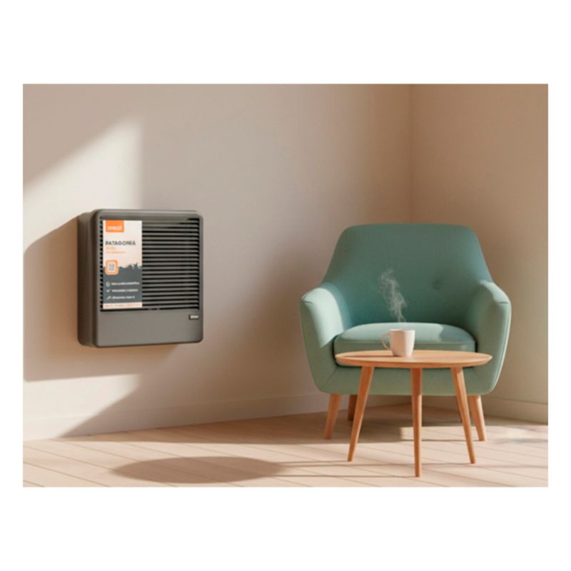 El calefactor a gas de tiro balanceado Emege Patagonia 9055 TB posee un diseño moderno que incorpora encendido piezoeléctrico; comandos superiores y sencillez en su regulación y mantenimiento. Gracias a su sistema, no consume oxigeno del ambiente. Su cámara de combustión sellada envía al exterior los gases que se van produciendo, creando un espacio más sano y seguro. No cuenta con termostato.