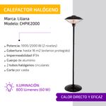 Calefactor Liliana Halógeno De Pie/Techo Exterior 2000W CHPIE2000