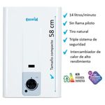 - Con una capacidad de 14 litros, este calefón proporciona un flujo constante de agua caliente, suficiente para las necesidades diarias de tu hogar, como duchas, lavado de manos y tareas de limpieza.