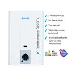 - Ahorra un 35% de gas, en comparación a los calefones con llama piloto.