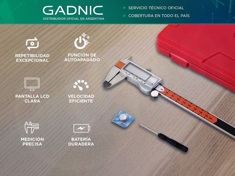¡Eleva tus estándares de medición con el Calibre Calibrador Gadnic! Un dispositivo confiable que ofrece precisión, velocidad y comodidad en cada medición. Simplifica tu trabajo y asegura resultados exactos con esta herramienta de calidad.