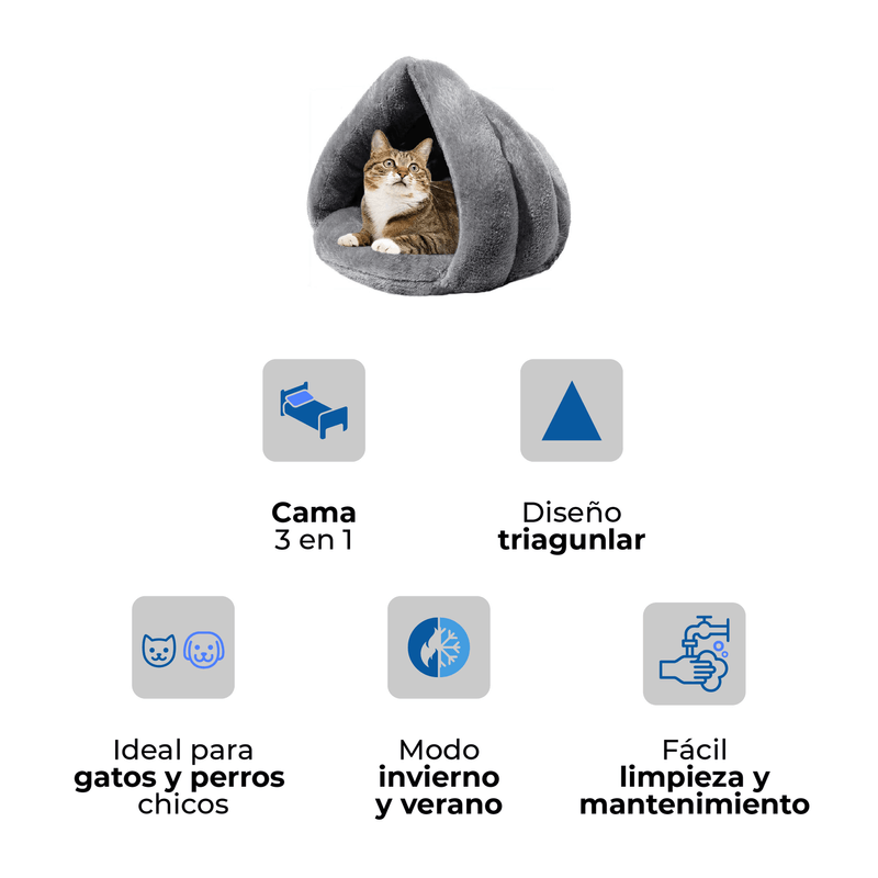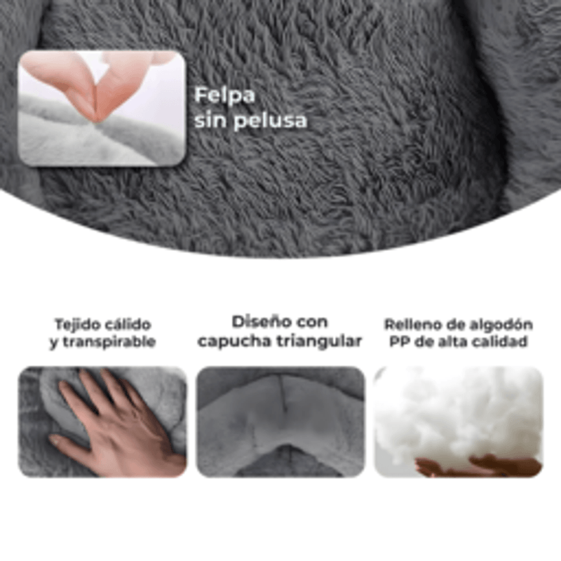 La Cama Cueva Plush para Mascotas WAGGS ofrece un espacio de descanso cálido, contenido y confortable, ideal para gatos y perros pequeños que buscan seguridad y abrigo al dormir. Su diseño tipo cueva genera una sensación de refugio natural, favoreciendo un descanso más profundo y tranquilo. Está confeccionada en felpa plush de alta calidad sin pelusa, con relleno de algodón PP de alta densidad que brinda suavidad, mullido y resistencia al uso diario. Su tela cálida y respirable permite utilizarla durante todo el año, adaptándose tanto a climas fríos como templados. Gracias a su diseño inteligente 3 en 1, puede usarse como cueva cerrada, cama abierta tipo colchón o invertida como cama circular. Una opción versátil, práctica y cómoda que acompaña cada momento de descanso de tu mascota con la calidad WAGGS.