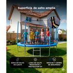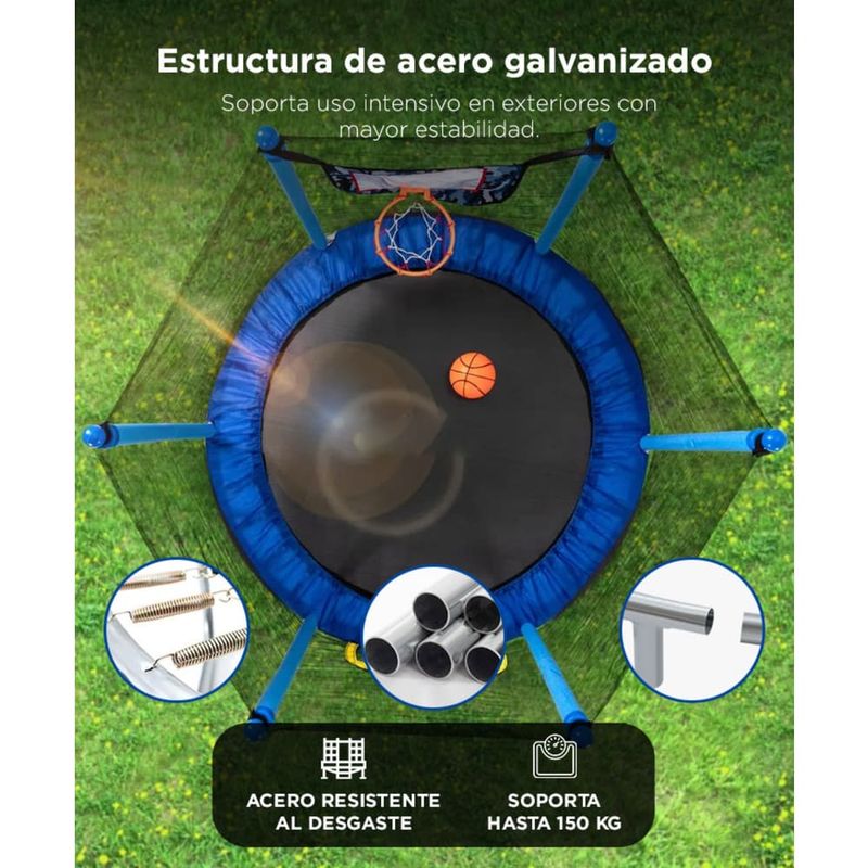 Con red de protección perimetral, postes acolchados y cubierta de muelles, evita caídas y golpes accidentales. Ideal para jugar sin riesgos.