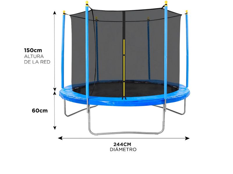 ¡Gadnic presenta su nueva línea de camas elásticas para exterior! Disfruta de las camas elásticas Gadnic de alta calidad. ¡Podrás divertirte sin límites! Montaje sencillo: Su resistencia y fácil armado la hacen unas de las más elegidas del mercado. Incluye su kit de armado Apta para exterior:Una cama elástica Gadnic es una gran inversión a largo plazo para la diversión de toda la familia. Está construida de materiales elásticos resistentes y aptos para el exterior Diversión y seguridadEsas son las prioridades de este producto, por eso, incluye red de seguridad de 150cm para evitar accidentes y soporta hasta 100kg