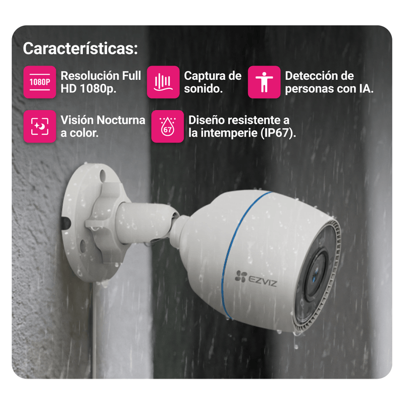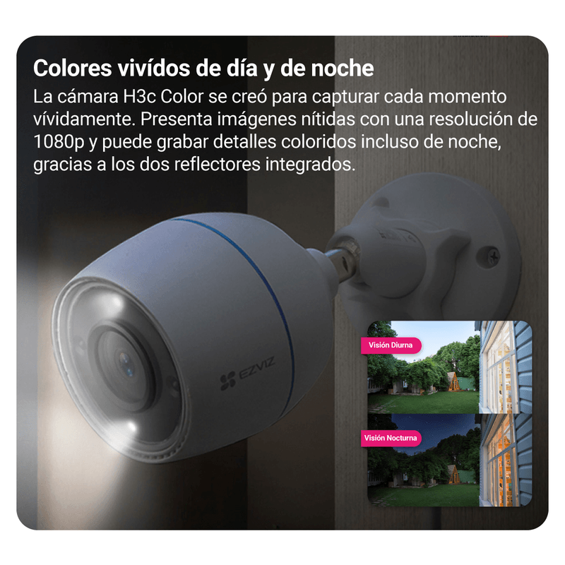 No busque más que la H3C Color si necesita una cámara inteligente que incluya todas las funciones esenciales para invertir bien su dinero. La cámara es fiable en todos los aspectos principales, ya que cuenta con visión nocturna en color, carcasa con diseño resistente a la intemperie IP67, detección de la forma humana con tecnología de IA y gran capacidad de almacenamiento local. Tanto de día como de noche, la H3C Color puede proteger bien su hogar.