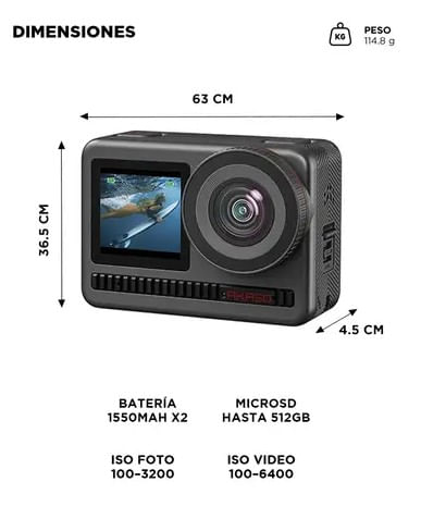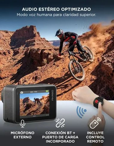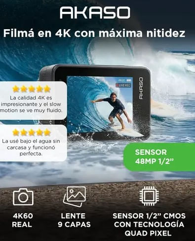 La Camara de Accion AKASO BRAVE 8 incorpora sensor 1/2” CMOS de 48MP que permite grabar en 4K60 con alto nivel de detalle. Ideal para deportes extremos y contenido profesional.