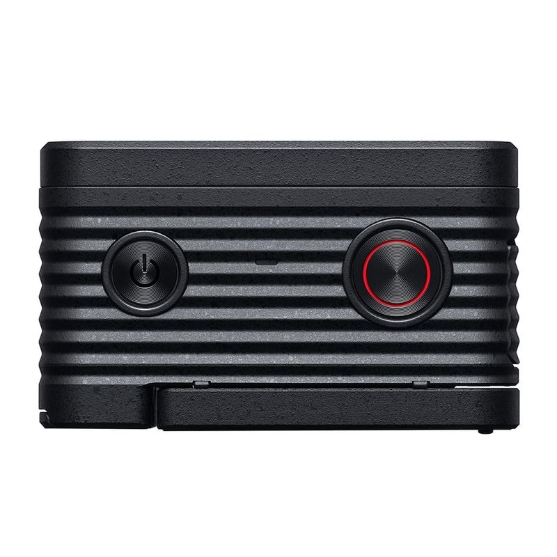 El cuerpo de duraluminio ultrarresistente tiene un diseño suave y elegante sin salientes. Aunque es un poco más grande que una caja de cerillas, incluye un cómodo monitor LCD inclinable a 180° y otras funciones prácticas diseñadas para facilitar la captura de fotografías y películas.