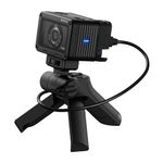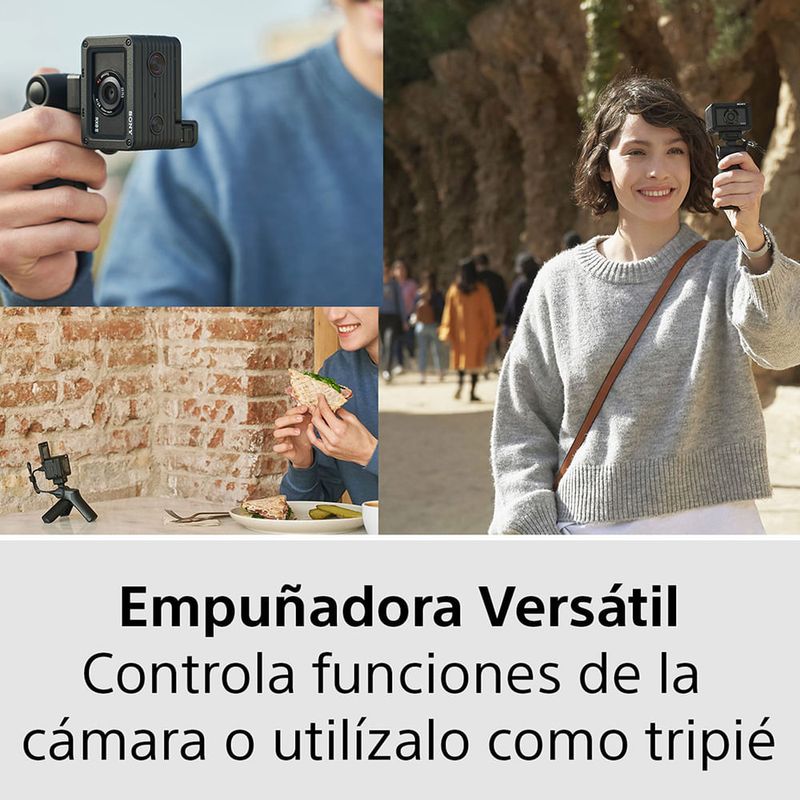 La empuñadura de grabación VCT-SGR1 se acopla fácilmente a la RX0 II para ampliar tu potencial creativo. Los controles integrados permiten olvidarte del obturador y grabar y hacer zoom directamente desde la empuñadura, que además se puede convertir en un minitrípode para mesa.