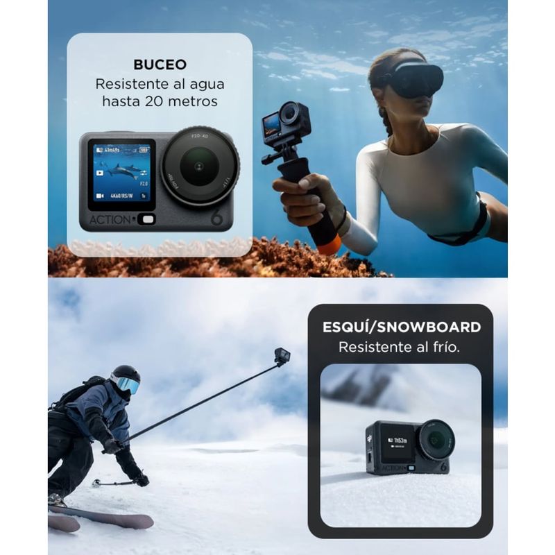 Sumergible hasta 20 m sin estuche. Graba vlogs, practica surf o nada con esta cámara sumergible y captura cada salpicadura en impresionantes vídeos 4K.