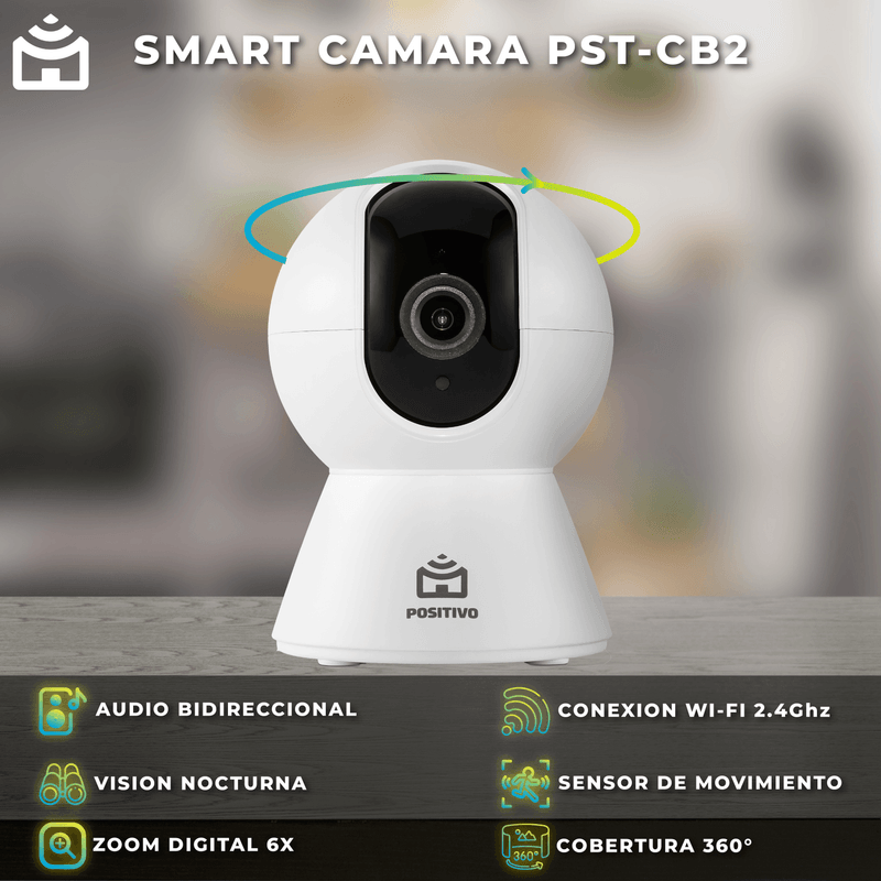 Camara Wi-Fi Positivo PSTCB2 Bot 360° / Resolucion 2MP Full HD / Sensor de movimiento / Audio Bidireccional / Vision Nocturna