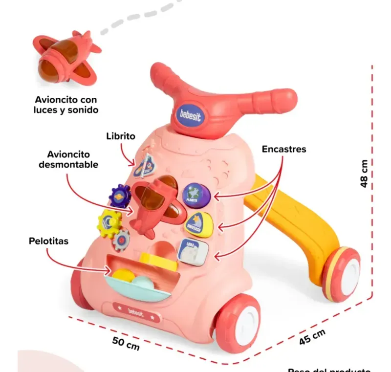 El Caminador Musical es el compañero ideal para acompañar a tu bebé en sus primeros movimientos. Su estructura firme, juegos interactivos y diseño colorido lo convierten en una opción segura y estimulante para esta etapa de descubrimiento.