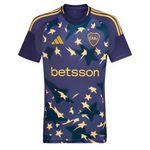 Una camiseta de Boca Juniors enfocada en los hinchas, hecha con materiales reciclados. 120 años de Gloria y Estrellas. Inspirada en los títulos obtenidos a lo largo de sus 120 años de historia, la nueva camiseta del Xeneize presenta un tono azul oscuro con estrellas doradas. Confeccionada para mantener a los hinchas con comodidad y orgullo, esta camiseta incluye tecnología de absorción AEROREADY y el clásico escudo con estrellas.