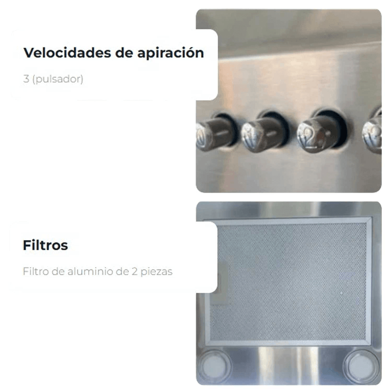 Este modelo funciona con sistema eléctrico, lo que garantiza un rendimiento constante y silencioso. Su estructura liviana de 14 kg facilita la instalación y el mantenimiento, convirtiéndola en una opción práctica tanto para renovaciones como para nuevas cocinas.