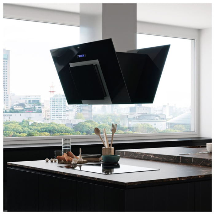 ACABADO: Acero, vidrio negro templado.