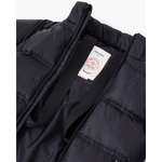Campera de abrigo con guata puesta a mano. Con capucha desmontable y tiras internas para colgarla.