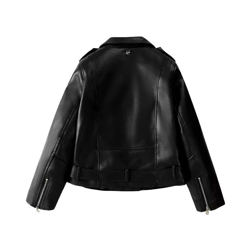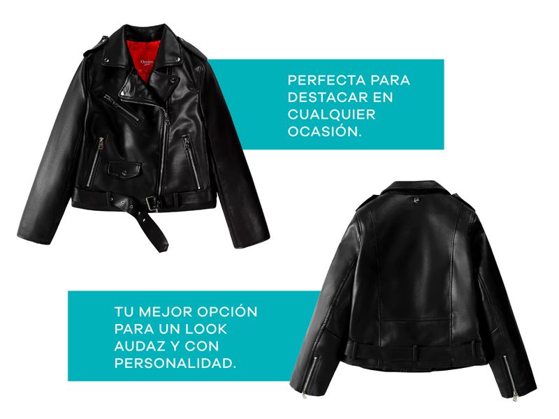 Hecha en eco cuero, esta campera combina estilo y conciencia ambiental. Su cierre cruzado le da un toque clásico y atrevido, mientras que los cierres decorativos agregan un detalle moderno y original. Perfecta para destacar en cualquier ocasión, esta campera es tu mejor opción para un look audaz y con personalidad.