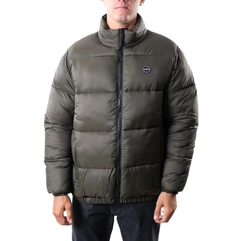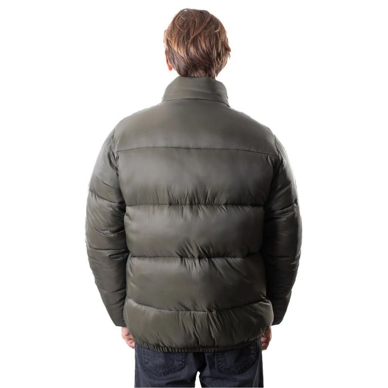 Campera estilo puffer de cuello alto con cierre en el frente.