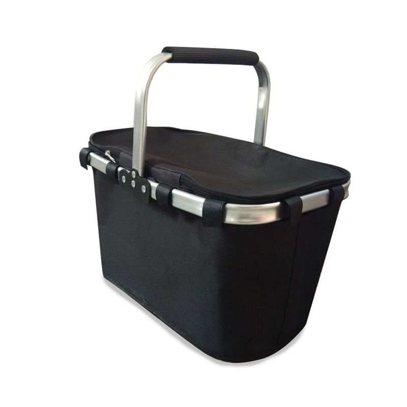 El marco es de aluminio y tiene 2 manijas rígidas de aluminio con grip de goma antideslizante para un mejor agarre. Cierre metálico, interior con cooler de aluminio; 2 varillas internas para asegurar su altura y que no se pliegue al usarla.