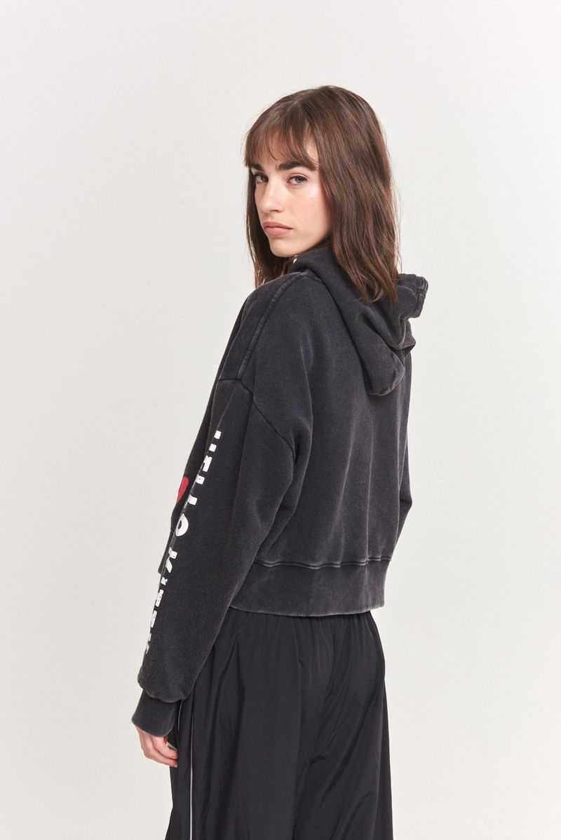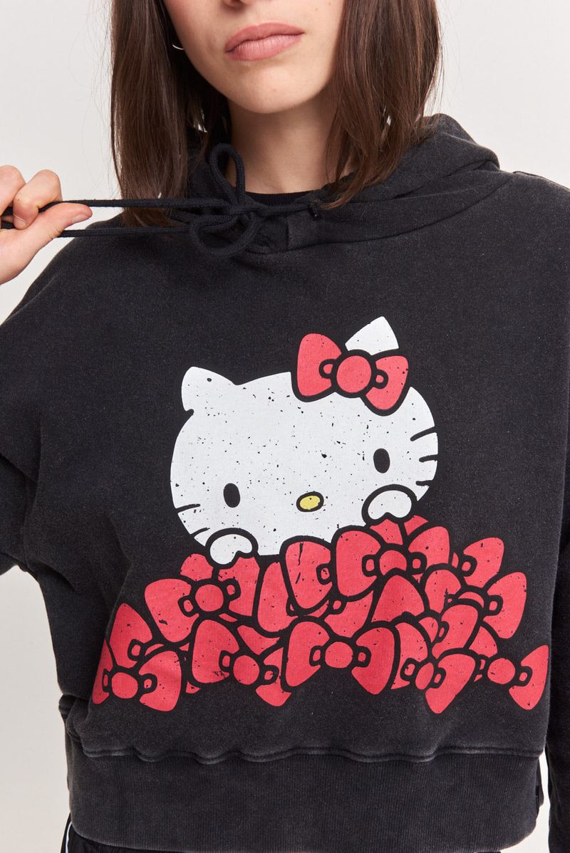 Canguro de rústico pesado, con puños y cintura de ribb complemento. Largo hasta la primera cadera. Cordones en capucha con puntera de goma. Estampa con personaje de Licencia Kitty. Este producto lleva proceso de lavado artesanal acid wash, puede variar en cada prenda. Lleva grifa Institucional.