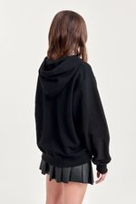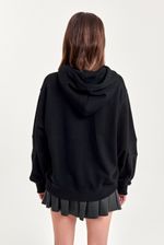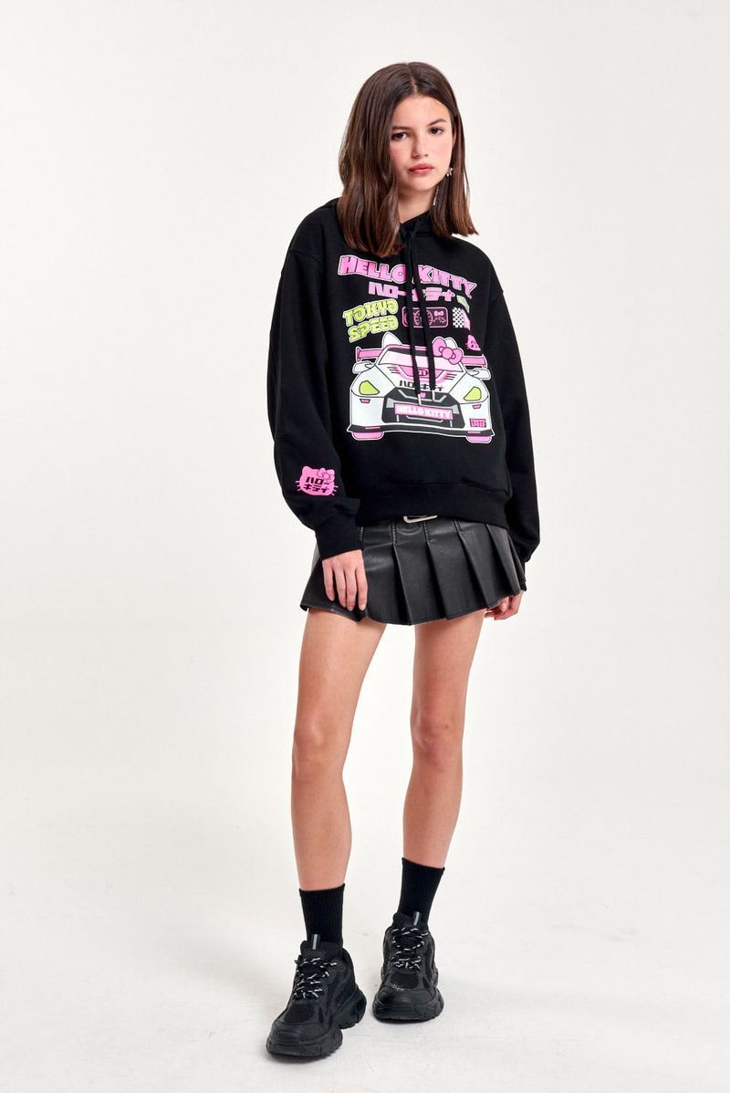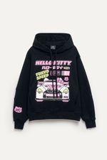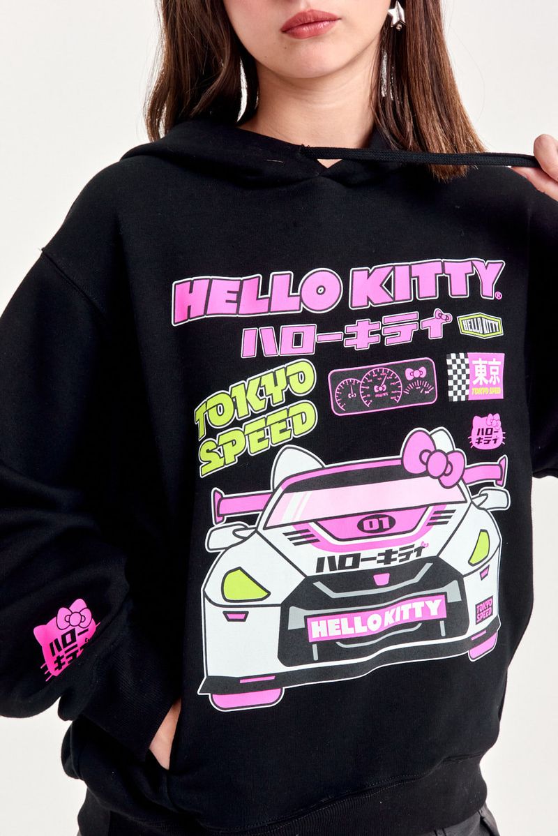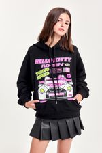 Canguro de fleece rústico con estampa de Kitty y amigxs en delantero y manga izquierda. Capucha forrada en tela base, cordón al tono, bolsillos en laterales y puños con abertura para el dedo pulgar. Cintura en morley al tono. Perfecto para looks con jean wide o jogger. Producto con licencia oficial Sanrio.