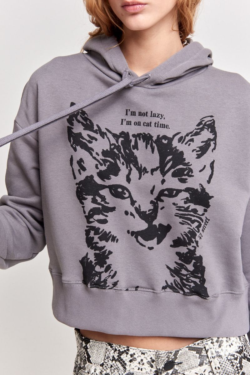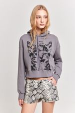 Canguro de rústico pesado con puños y cintura de morley complemento. Capucha con cordón a tono. Estampa en el delantero.