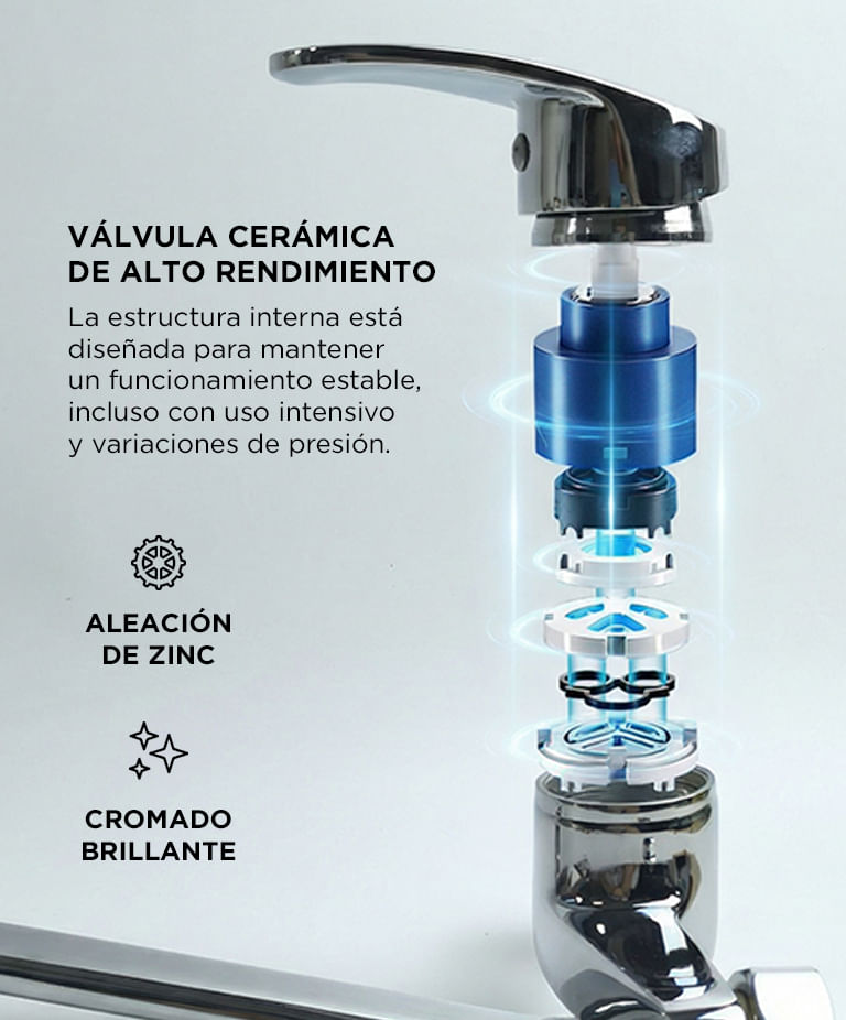 La aleacion de zinc con acabado cromado brinda solidez estructural