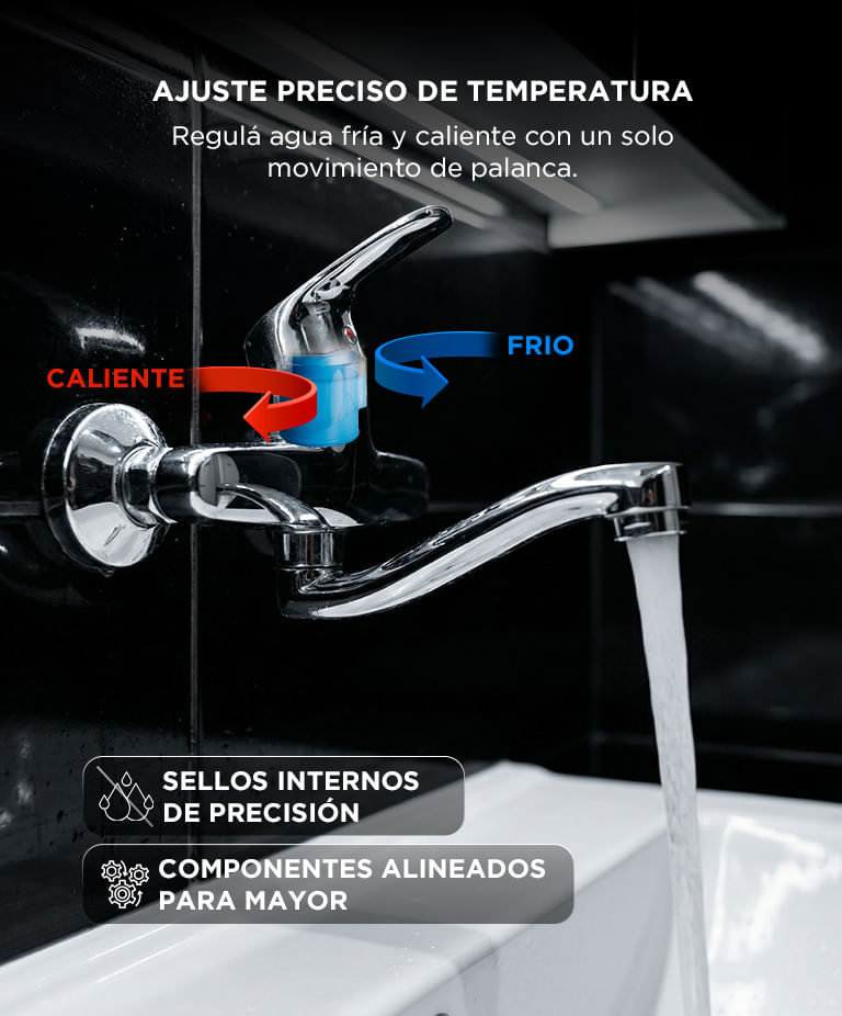 El sistema monocomando permite regular caudal y temperatura facilmente