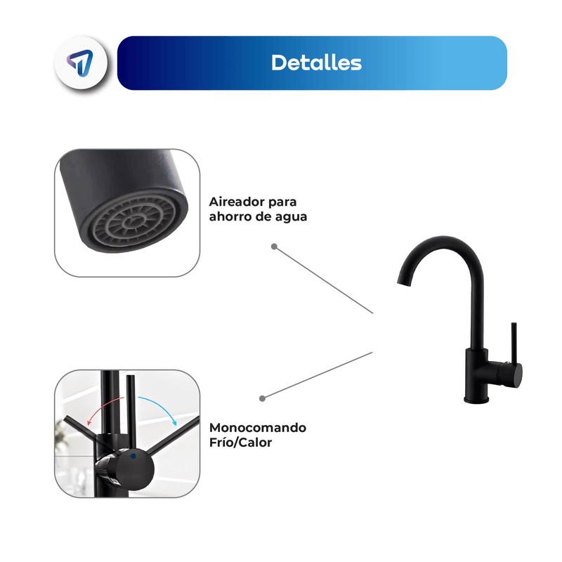 La grifería WAGGS combina estilo moderno y máxima resistencia con cuerpo metálico y acabado premium, ideal para cocinas contemporáneas. Su movimiento giratorio de 360° brinda total maniobrabilidad, mientras el aireador incorporado ofrece un chorro uniforme y sin salpicaduras. Cuenta con control monomando, cierre cerámico y es compatible con agua fría y caliente. Se instala en mesada con un solo agujero. Incluye mangueras de conexión de 60 cm, kit de instalación y manual. WAGGS ofrece diseño, solidez y comodidad para mejorar tu rutina diaria en la cocina.